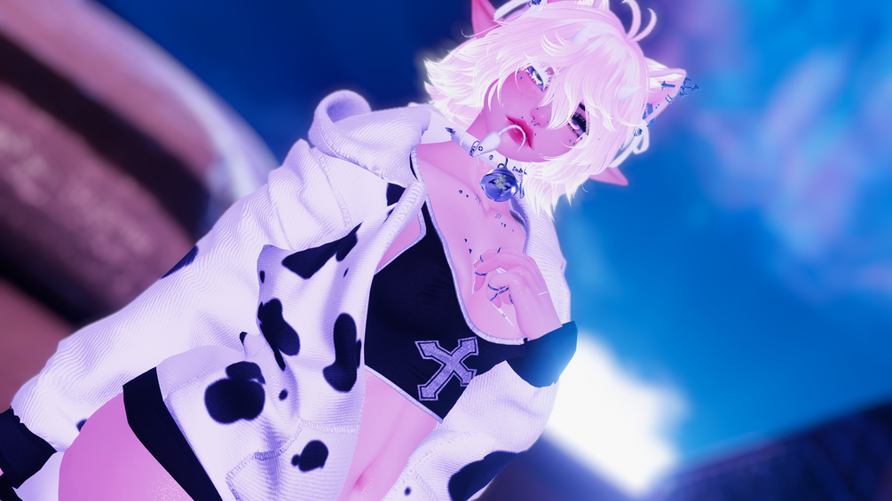 Head & Body- Sivka , ZInpia (EDITED BY ME, NO REUSE) | Beanie - Hayweee | Choker , Back Bow , Socks, Cat Ears Bottoms,- Milkymutt | Hair - Nessy & Saikura | Kitty Garter, Cat Tail , Mouth Mouse Toy - Koragira | Nails, Horns - ME | Hoodie - Saikura | Glasses - C391 | Slippers - yuriyarawr | Body Piercings, Rings - Daddyissuez | Ears - Cupkake | Eye and Hair Texture - Sivka, cicieaaavr | Vrc face tracking addon - threevee
