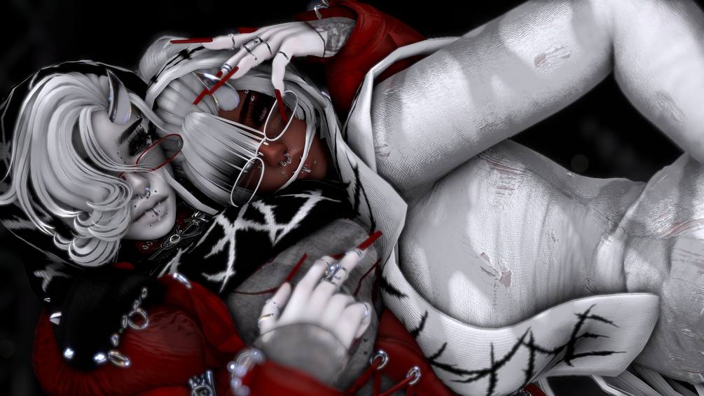 Head & Eyes & Body - Nessy, Zinpia, Fair (Edited By Me, NO REUSE) | Hair 1,2,3- Nessy, Saikura | Socks - BOO | MouG & Blindfold - Teddymuffins, Luvdy | Glasses - tobsil | Corset Piercings & Earrings& Body Piercings/ Rings - ThatDemonPanda, Daddyissuez, Luvdy, Milkymutt | Elf Ears - Bunisu | Necklaces - Nessy, AATT Alces, Latita | Belts, Pan, Heels, Dress, Corset Chain, Necklace - Nauuki | Past & Corset - Nessy (NO LONGER BEING SOLD) | Top - Milkymutt | Tail - Daddyissuez | Hood - Kaycee | Jacket - Cybermami | Arm Sleeve & Thigh Heel - Miriaaamvr | Hair / Alpha - Sivka, cicieaaavr |